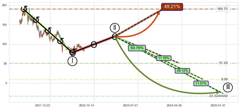 ➢ 循环浪继续向下【最低】位置(2025-02-12, -33.3244442),匹配聚类样本比例22.67%, 可能性概率11.51%
