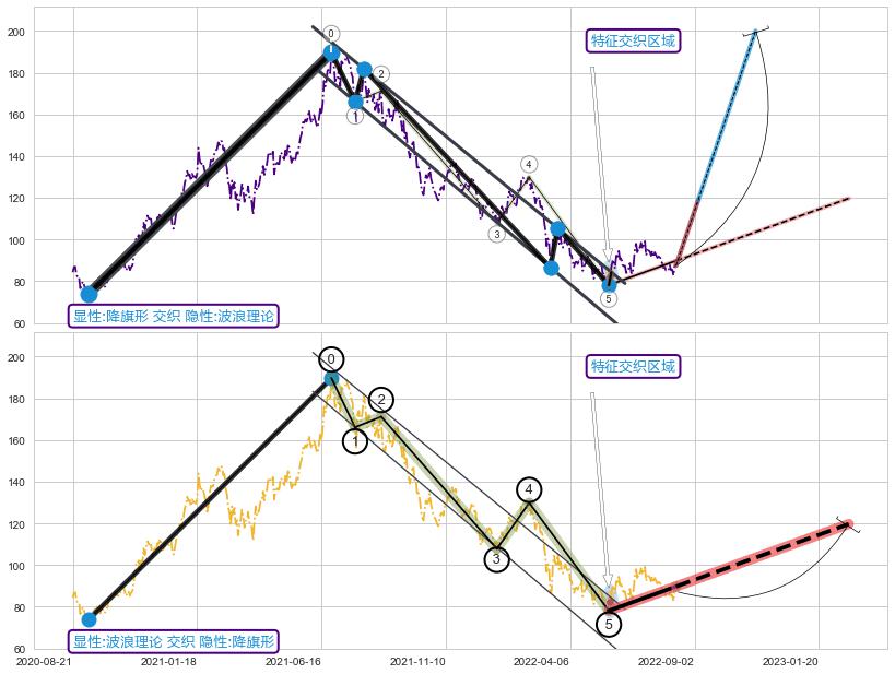➢ 降旗形与波浪理论信号事件周期长度级别相同,同周期信号事件