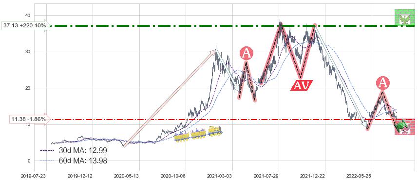 ♘ 阻力价格位37.13,可信任强度77.12%,距离最后交易2022-08-12形成的收盘价格11.60相差 +220.10%