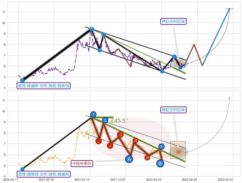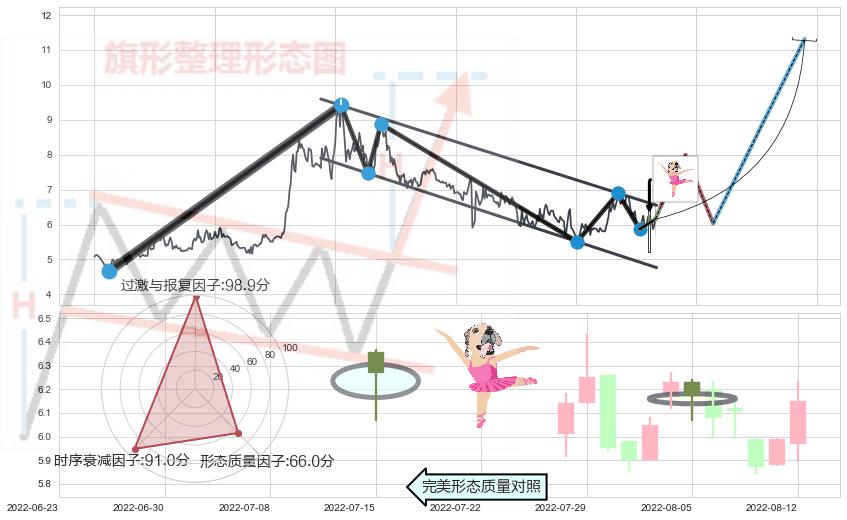 ➣ 【未确认突破,预测即将形成突破】降⚑旗形起点:2020-10-07, 预测突破点:2022-08-19,形态共460交易日