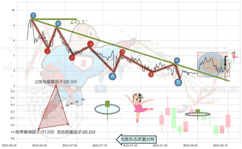 ➢ 【未确认突破,预测即将形成突破】下跌矩形整理起点:2022-06-29, 预测突破点:2022-08-16,形态共34交易日