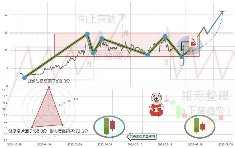 ♘ 阻力价格位13.55,可信任强度96.63%,距离最后交易2022-08-12形成的收盘价格9.50相差 +42.65%
