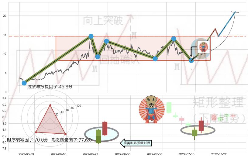➢ AI智能: 预测【空方力量耗尽】,矩形中继整理向上突破,预测将在2022-10-14突破矩形提供的颈线