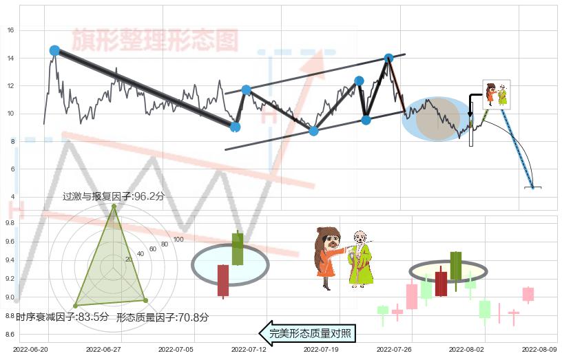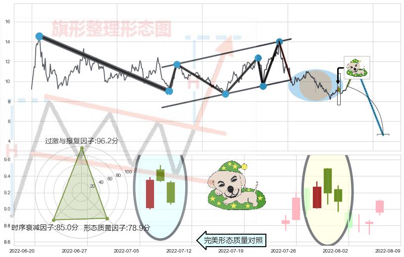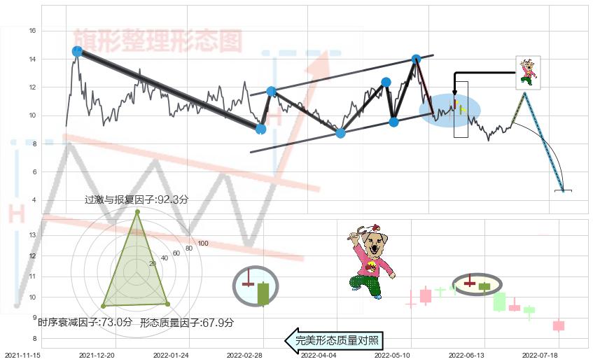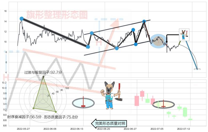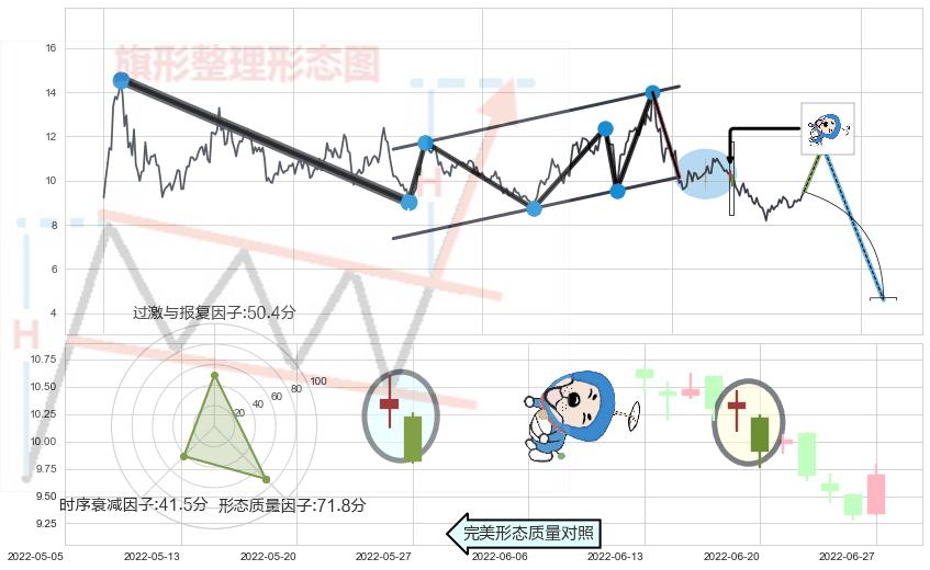 ➢ 下跌螺旋桨 🔜 升旗形支撑破位转换阻力下跌 综合量化分数:43.13 【偏空】