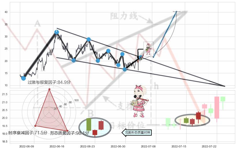 ➢ 🕰 价格走势在2022-07-14至2022-07-14期间形成锤头线(锤子线),残存影响值:4.98