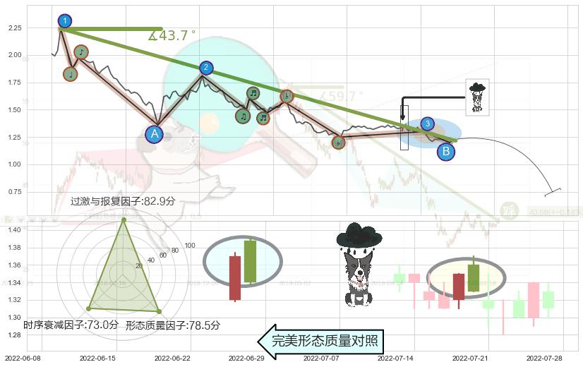 从2022-01-24至2022-08-12,共包含135个交易日,阶段股价下跌-55.50%,阶段股价变动位移路程比: 1 : 4,下跌趋势角度: 43.7