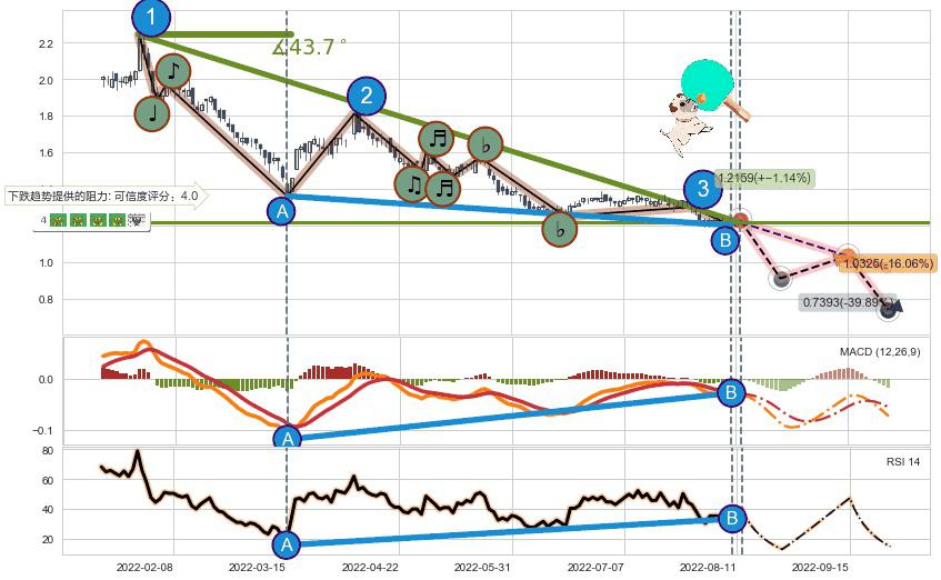 ➣ 预测:2022-09-15,【试探阻力】稳定目前下跌趋势的前提下,预测价格:1.0325