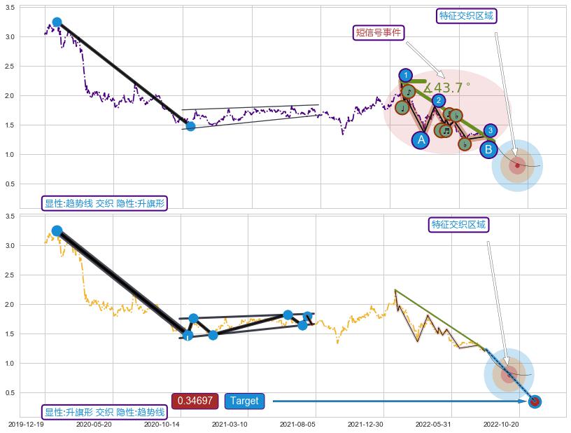 ➢ 趋势线属【短级别信号事件】升旗形属【长级别信号事件】长短周期组合信号事件, 短长事件长度比35.54%