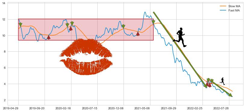 2021-05-26至2022-03-22 慢线与快线呈空头排列, 慢线与快线接触少,无缠绕