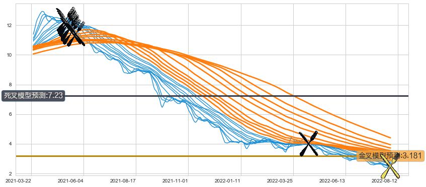 ➣ 40小时均线于(2021-05-11: 12.17)形成【死叉】基于【死叉历史模型】预测死叉后最低波谷价格: 11.35, 死叉后最低价格2.330,已经下跌超出预测最低波谷价格, 预期反弹