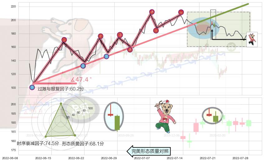 ➢ 2022-03-15-2022-07-11上升趋势存在反转[风险],其原上升趋势的支撑位(223.91)已破位[强阻力信号],原上升趋势角度: 47.4˚