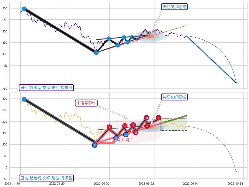 ➢ 趋势线属【中级别信号事件】升楔型属【长级别信号事件】中长周期组合信号事件,中长事件长度比59.84%