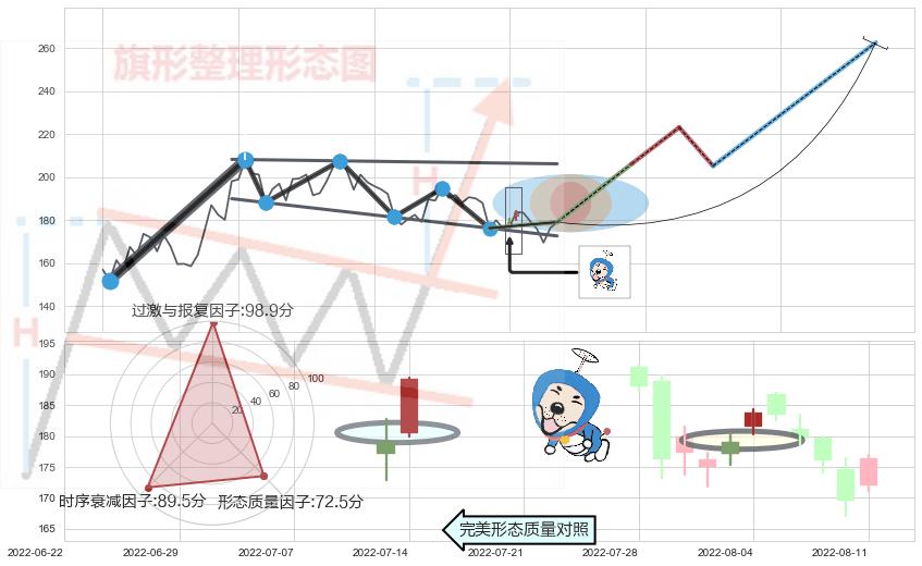 ➢ 【未确认突破,预测即将形成突破】降⚑旗形起点:2022-05-10, 预测突破点:2022-08-29,形态共78交易日