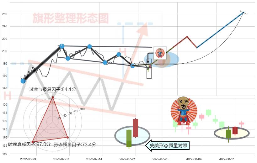 ➢ 【未确认突破,预测即将形成突破】降⚑旗形起点:2022-04-21, 预测突破点:2022-08-17,形态共81交易日