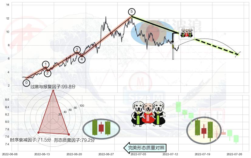 ➢ 🕰 价格走势在2022-07-15至2022-07-19期间形成两黑夹一红,残存影响值:-4.24