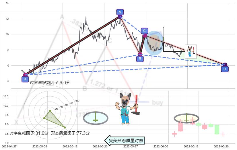 ➢ 🕰 价格走势在2022-06-06至2022-06-13期间形成下跌身怀六甲,残存影响值:-4.77