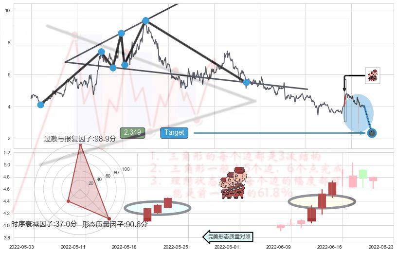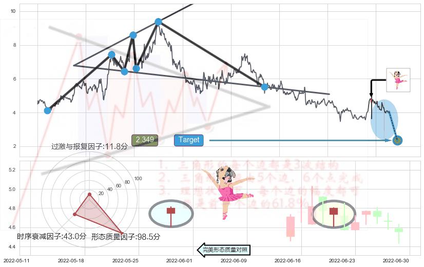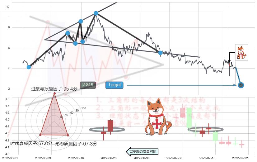 ➢ 曙光初现形态 🔜 扩散三角反转临近target支撑拐点上涨 综合量化分数:54.57 【偏多】