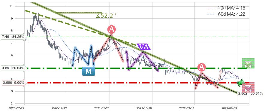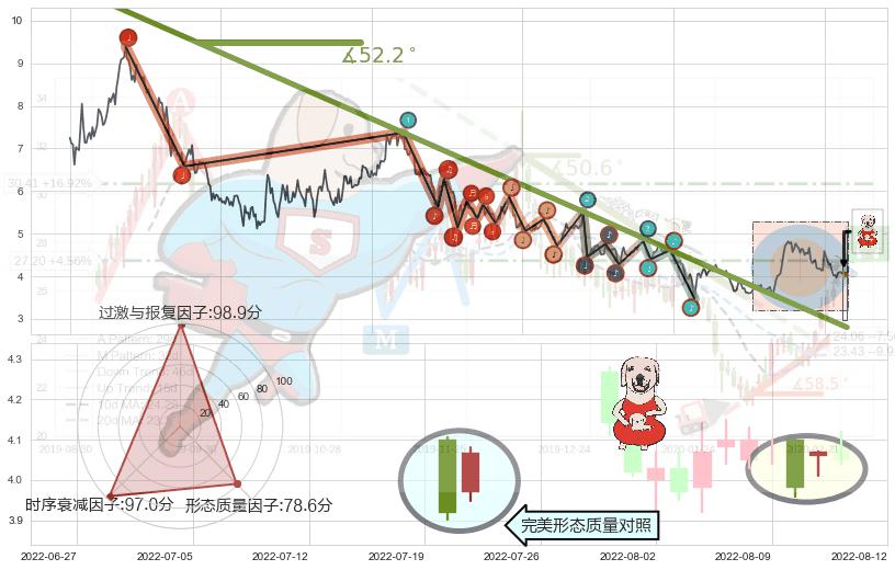 ♘ 阻力价格位4.89,可信任强度87.77%,距离最后交易2022-08-12形成的收盘价格4.05相差 +20.64%