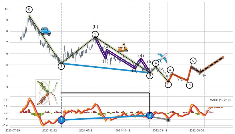 ➢ 波浪理论:猜想b点持续蓄力上涨至c点 → 上涨 → 机会信号 → 小趋势跟踪