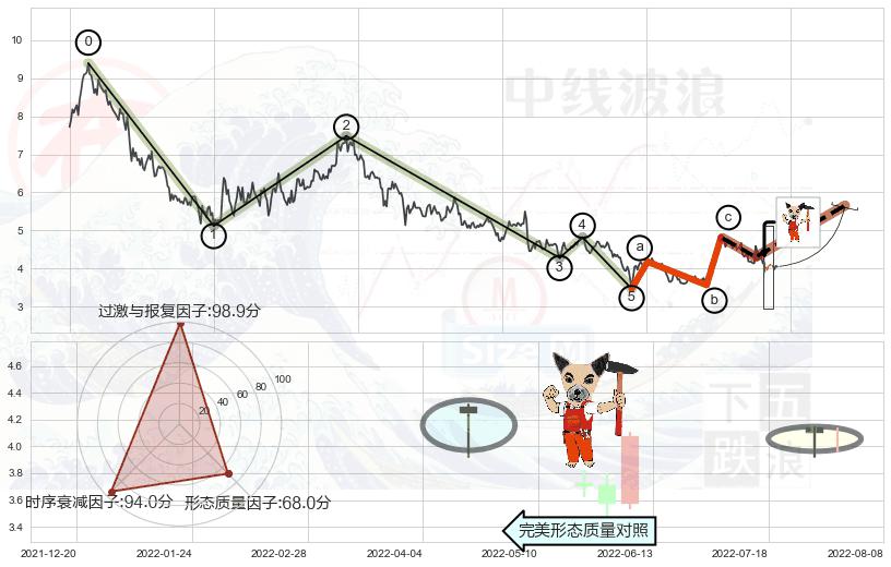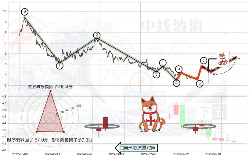➢ 曙光初现形态 🔜 波浪理论b蓄力反弹上涨至c 综合量化分数:54.96 【偏多】