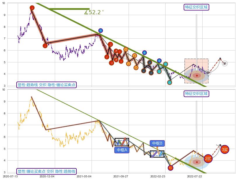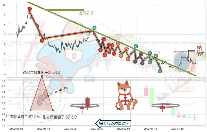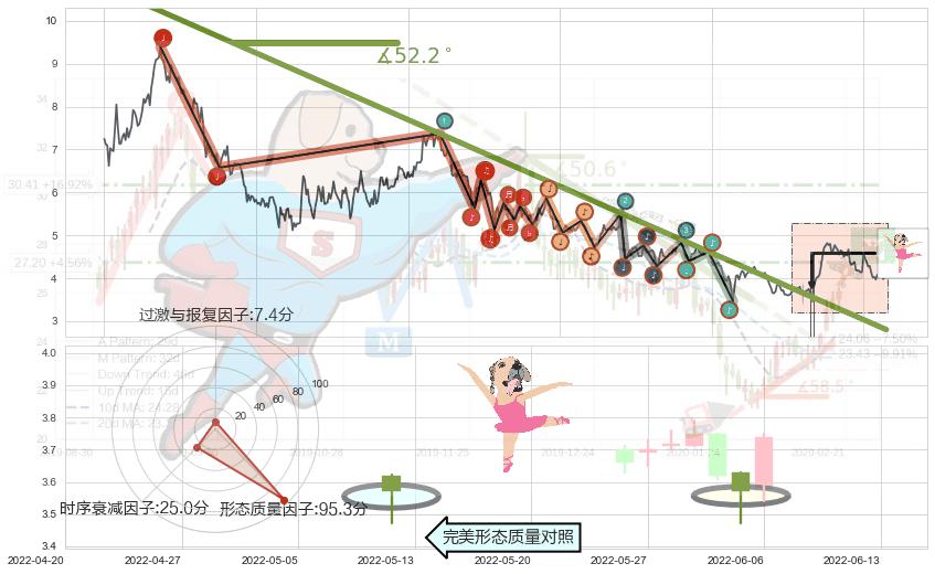 从2020-07-31至2022-04-01,共包含414个交易日,阶段股价下跌-38.47%,阶段股价变动位移路程比: 1 : 23,下跌趋势角度: 52.2
