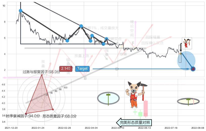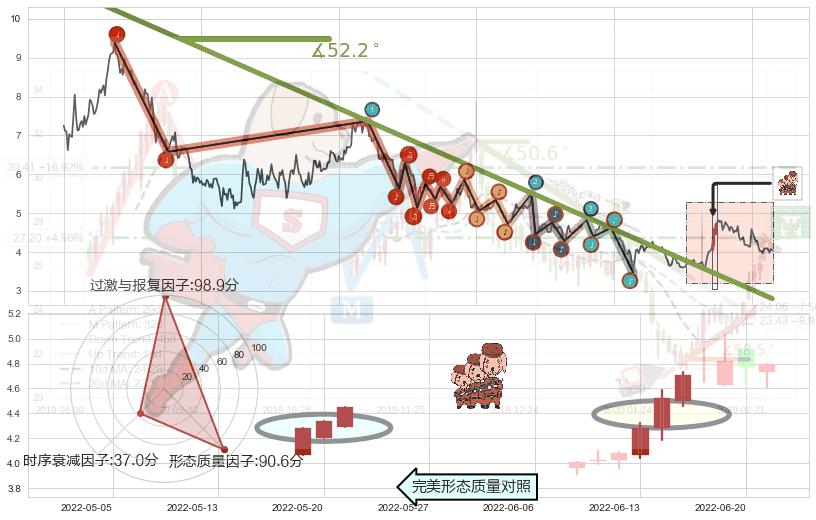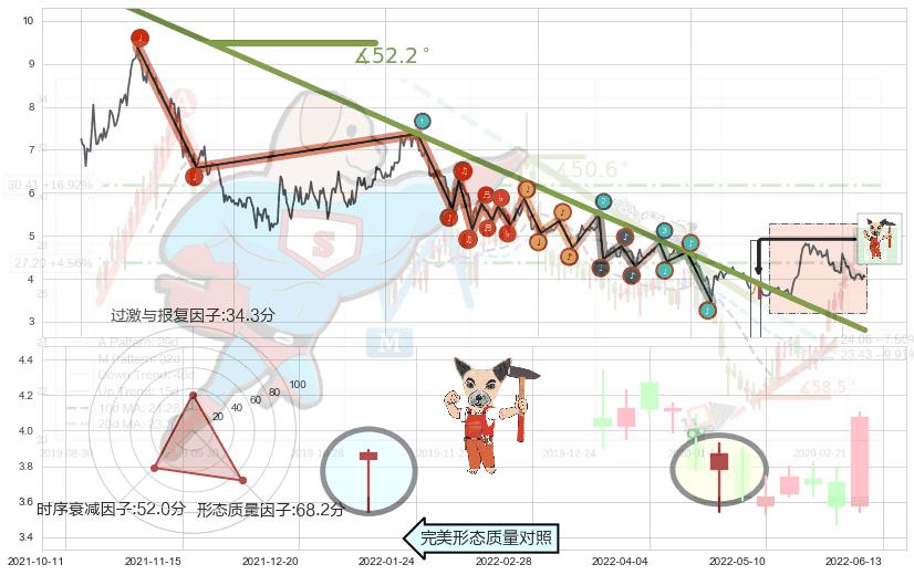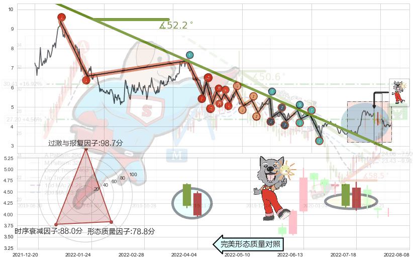 ➢ 2020-07-31-2022-04-01下跌趋势存在反转上涨[机会],其原下跌趋势的阻力位(2.802)已被突破[强支撑信号],原下跌趋势角度: 52.2˚