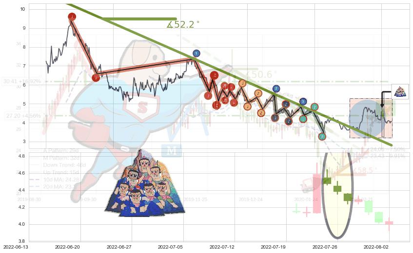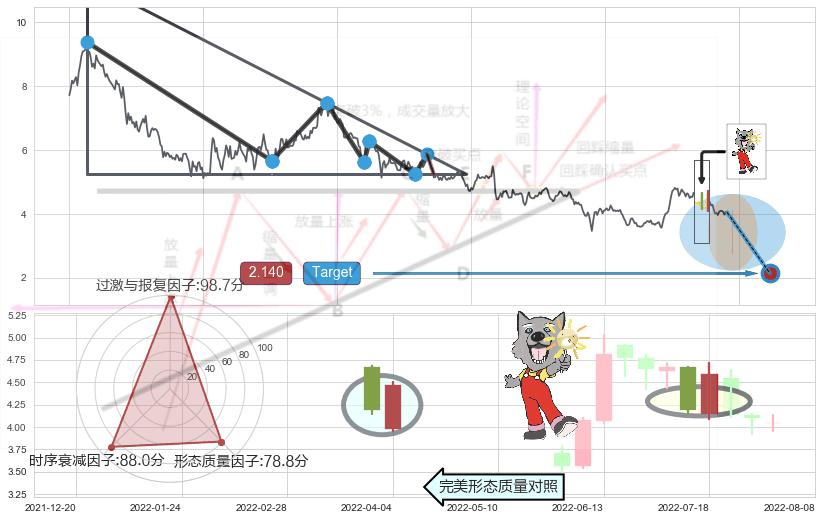 ♘ 阻力价格位7.46,可信任强度50.75%,距离最后交易2022-08-12形成的收盘价格4.05相差 +84.26%