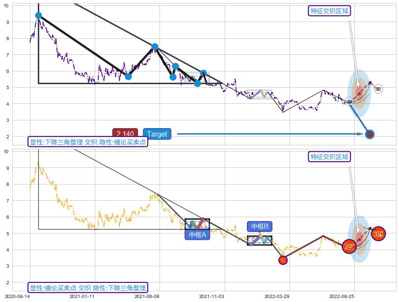 ➢ 扩散三角反转临近target支撑拐点上涨 🔜 下降三角整理临近target支撑拐点上涨 综合量化分数:49.98 【中性】