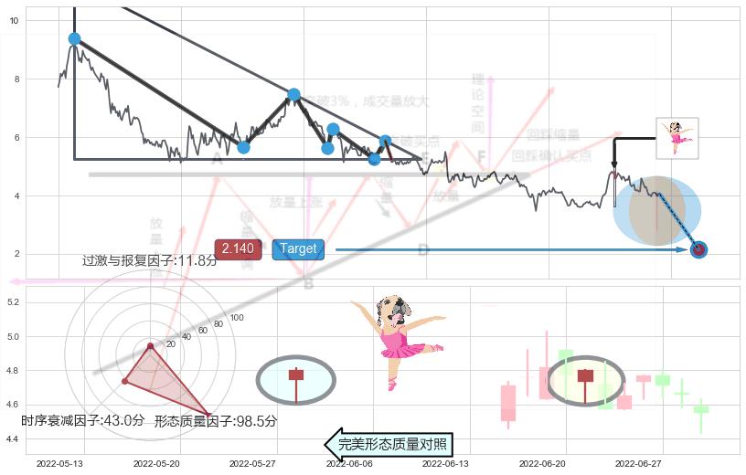 ➢ 上涨身怀六甲 🔜 下降三角整理临近target支撑拐点上涨 综合量化分数:53.34 【中性】