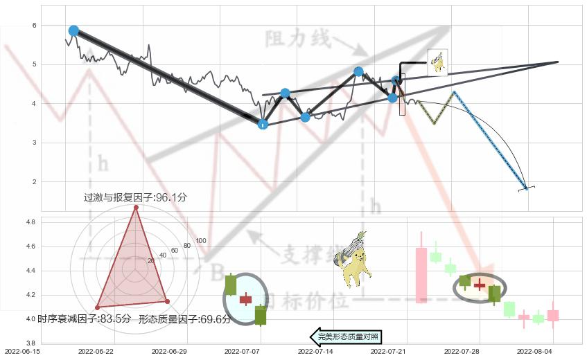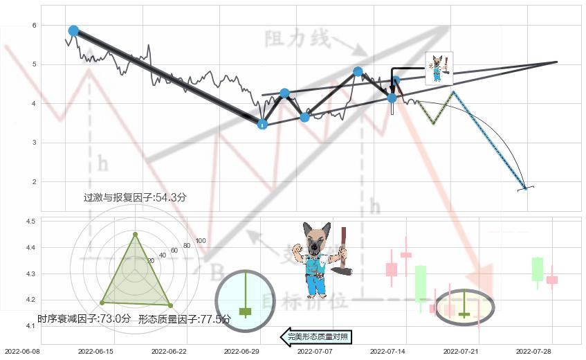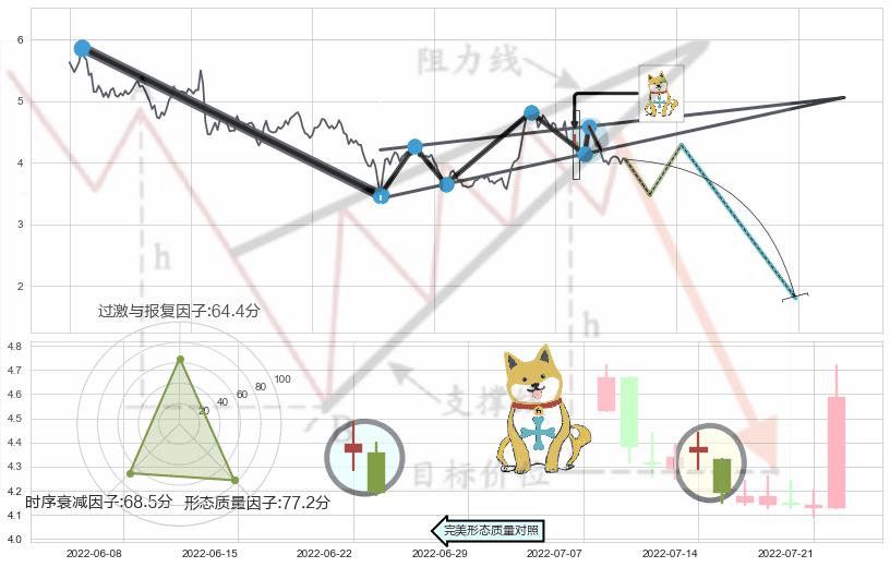 ➢ 【卖1】: 激进型 卖点→(2022-07-29: 4.20 )形成突破升🚩楔型【整理】形态