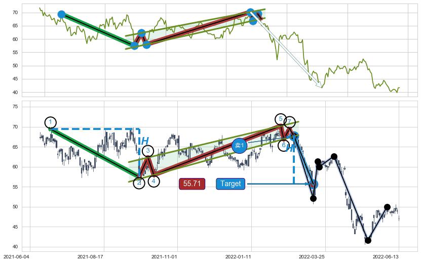 ➢ AI预测: 假定反转如期而至,第❸价格目标位置(2023-02-23, 71.75)