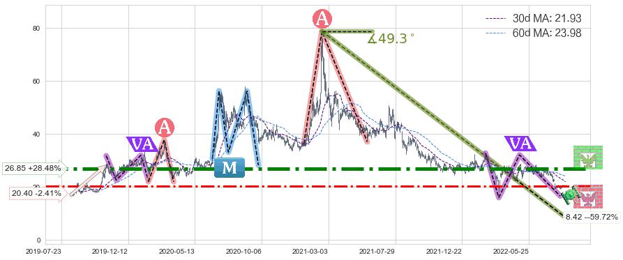 ♘ 阻力价格位26.85,可信任强度87.05%,距离最后交易2022-08-12形成的收盘价格20.90相差 +28.48%