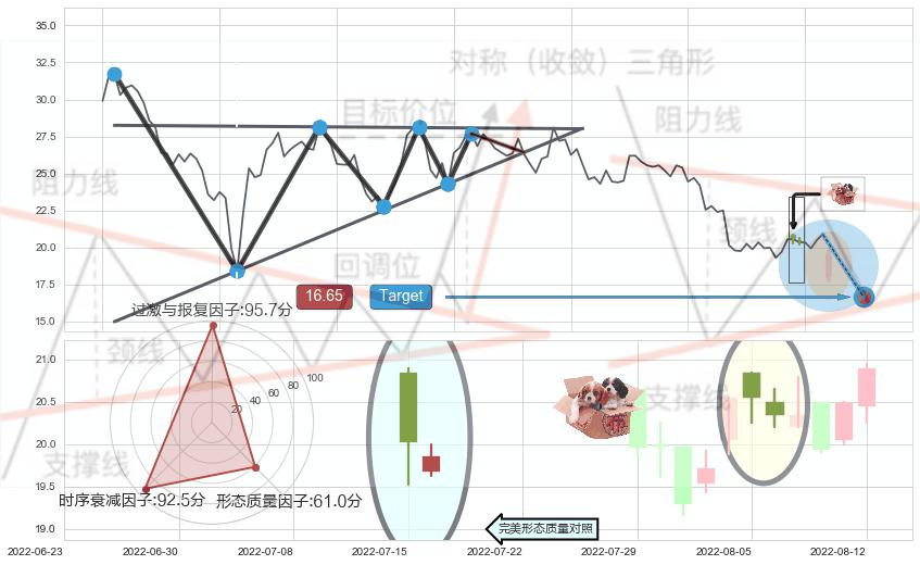 ➢ 底部尽头线(上山虎) 🔜 下降对称三角整理临近target支撑拐点上涨 综合量化分数:53.95 【偏多】