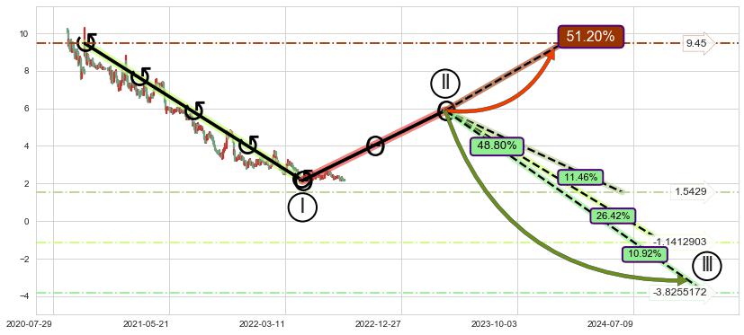 ➣ 波浪理论:猜想止跌 → 上涨 →【拐点】浪5已完成 → 大趋势均值回复