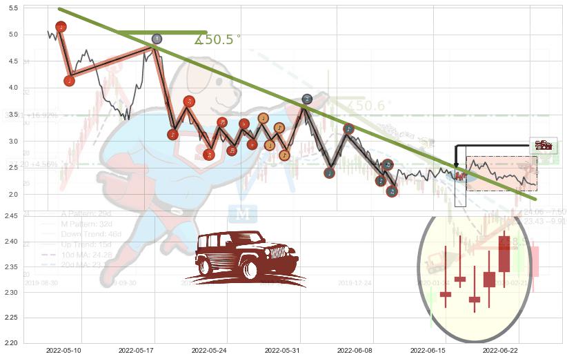➣ D点拟合预测价格2.130,距离最后交易收盘价格2.170相差 -1.86%