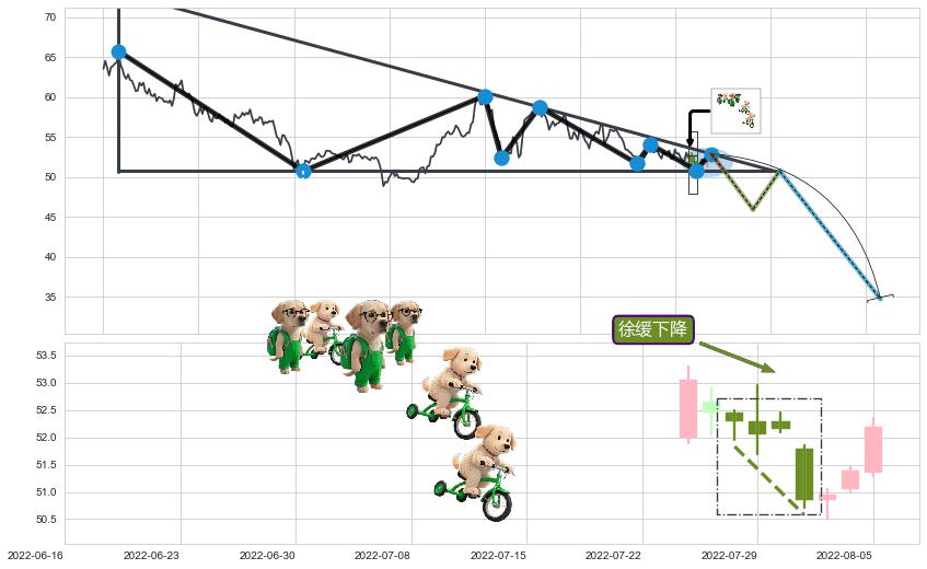 ➣ 收盘价(2022-08-05: 52.20 )→回踩→第一根k线低点(2022-08-01: 52.10 )