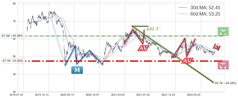 ♞ 30日均线:52.45,60日均线:53.25→ 快线<慢线