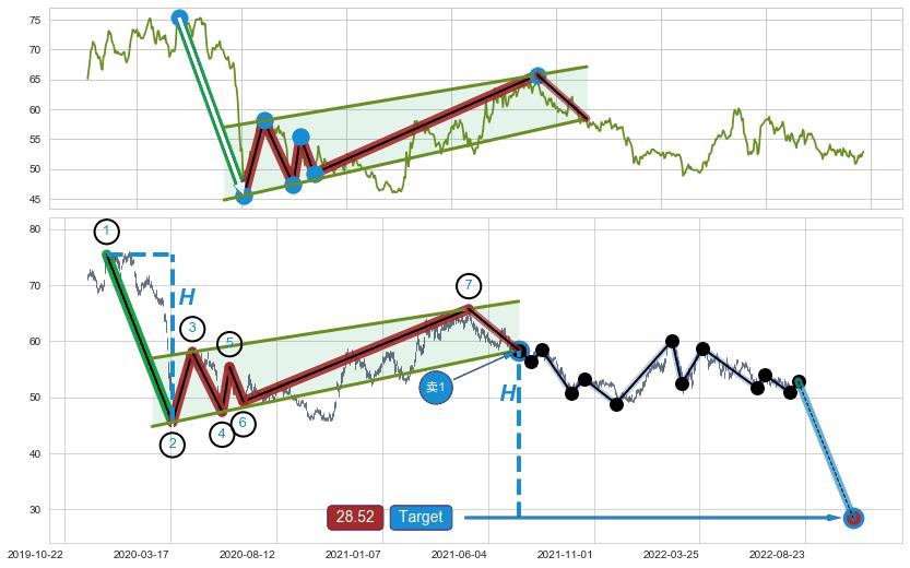 ➣ 最小反转跌幅→𝐇: 6.17 (头部与颈线垂直距离)