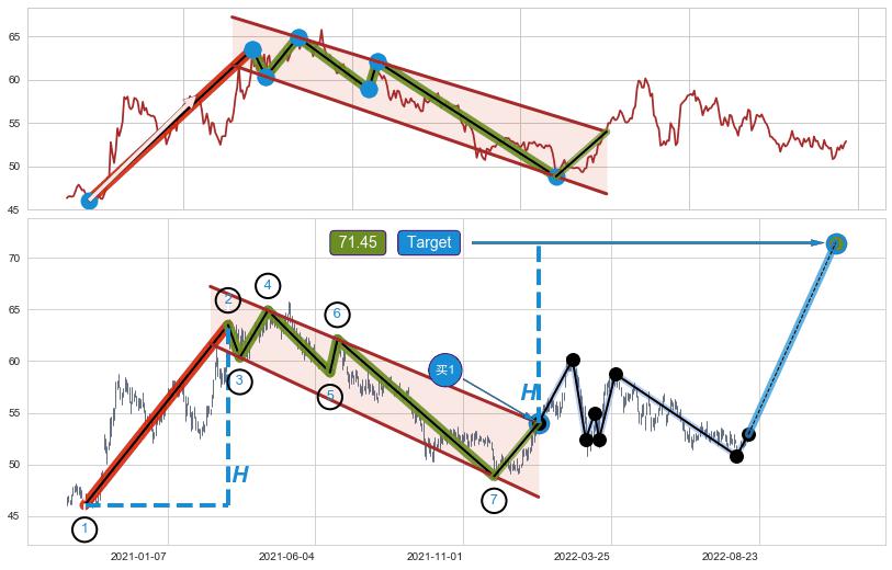 ➣ 最小中继整理涨幅→𝐇: 17.45 (𝐇旗杆的长度:旗杆起点→顶点)