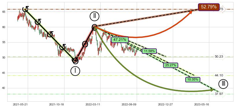 ➣ 大趋势循环浪继续向下概率47.21%