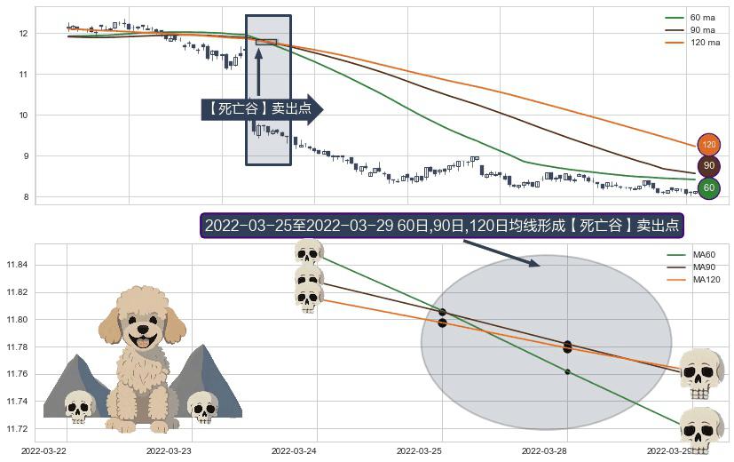 形态多维评估: ⚀ 2022-03-28-日至2022-03-29-日显现 60日-90日-120日均线 【死亡谷】卖出点 看空信号,后市看跌,卖出