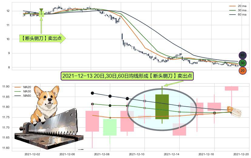 形态多维评估: ⚀ 2021-12-13日显现 20日-30日-60日均线 【断头铡刀】卖出点 看空信号,后市看跌,卖出
