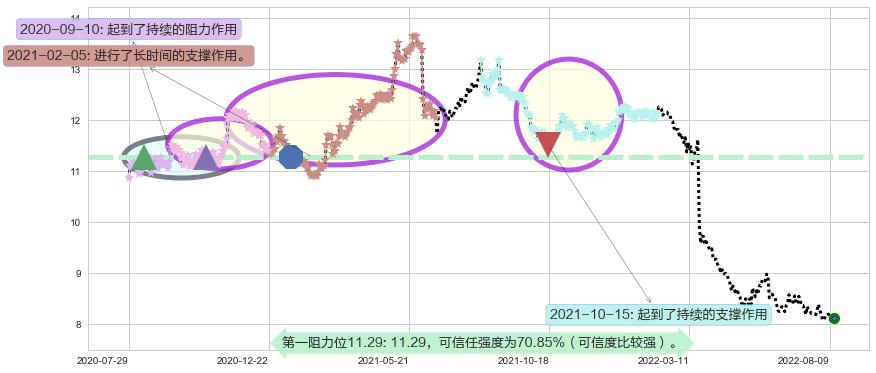 ♘ 阻力价格位11.29,可信任强度70.85%,距离最后交易2022-08-12形成的收盘价格8.13相差 +38.86%