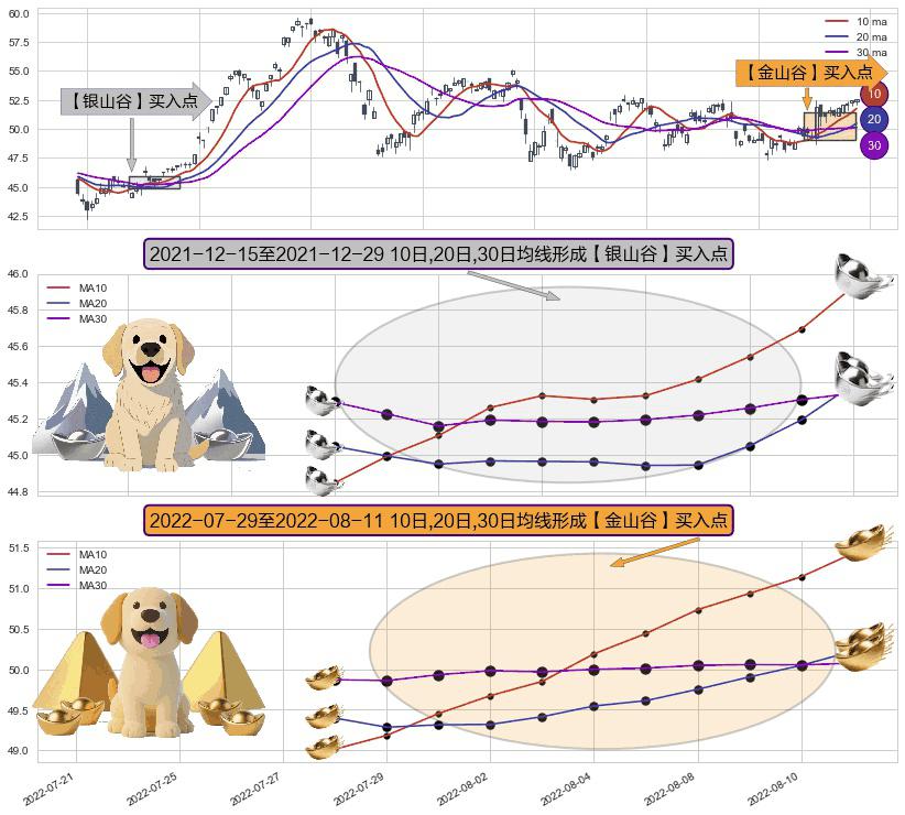 ⚄ 2022-08-01-日至2022-08-11-日显现 10日-20日-30日均线 【金山谷】买入点 其再次确认了买入信号,可靠性更强,买入
