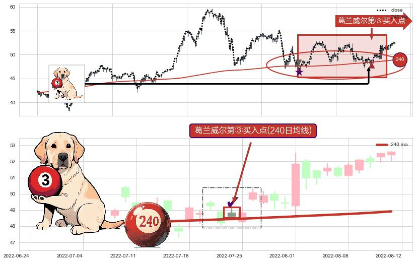 ⚀ 2022-07-22-日显现 葛兰威尔均线 240日均线 第③买入点 上升趋势的中继信号,后市看涨,买进信号