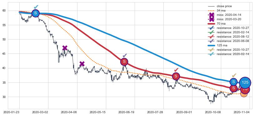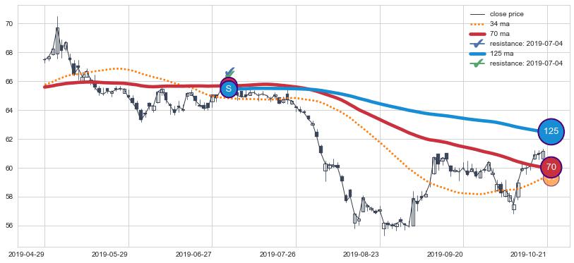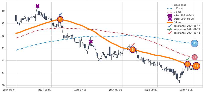 ⚁ MA3和MA8走势平行,且始终保持在短距离内,MA21始终在短中期均线上方,与短中期均线保持一定的距离,微微下行