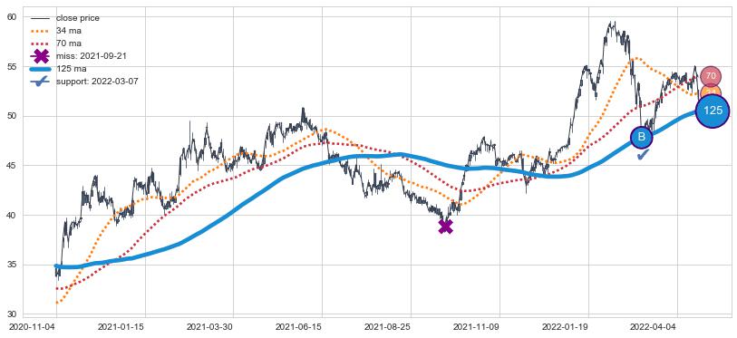 ⚂ 2022-05-12-日均线向下破位,2022-07-22-日重新上穿突破均线,均线支撑再次生效