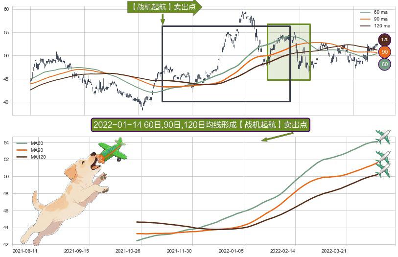 ⚀ 2021-10-22日-2022-04-12日显现 60日-90日-120日均线 【战机起航】卖出点 看空信号,后市看跌,卖出