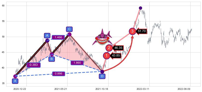 ➣ 已达成看涨【鲨鱼】形态全部的预期目标