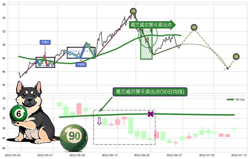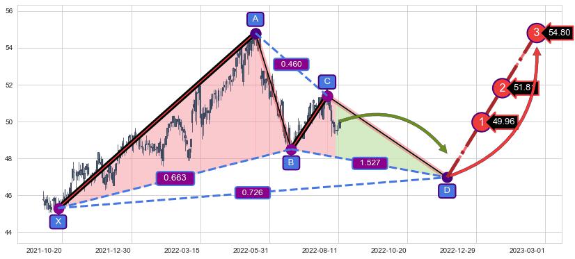 ➣ D点拟合预测价格46.97,距离最后交易收盘价格50.00相差 -6.06%